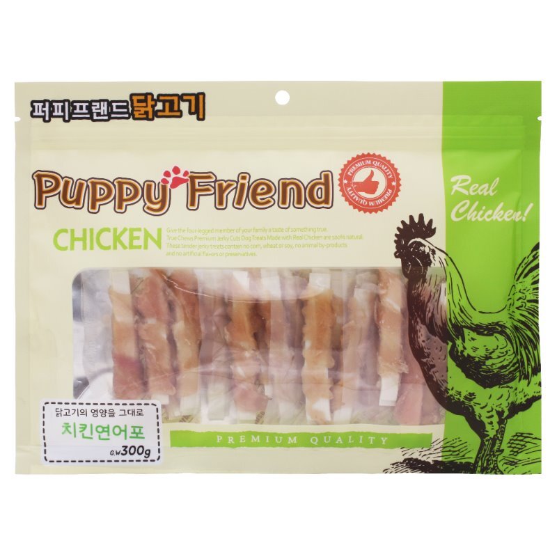 - 퍼피프랜드 치킨간식 강아지 사사미 통닭가슴살 DHA 300g