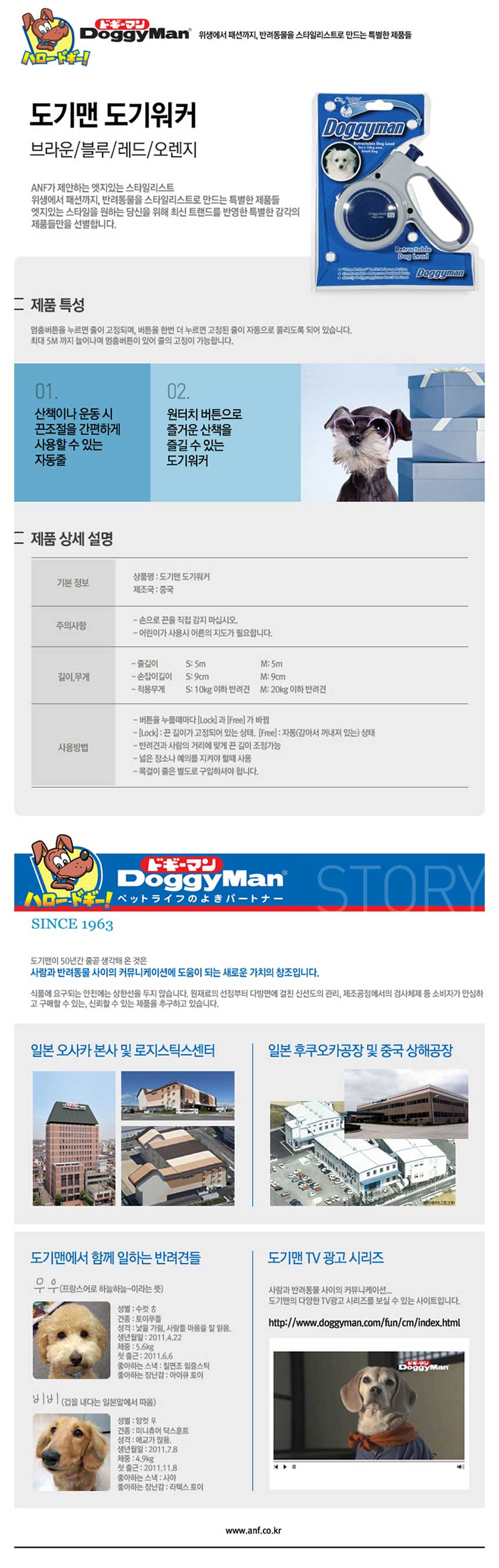 home > 강아지 > 목줄/하네스 > 자동리드줄 > DoggyMan 도기워커 블루 M (5M/20Kg이하)