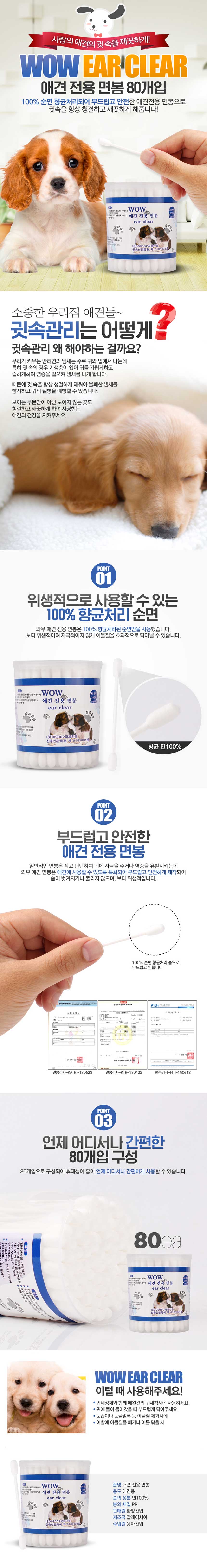 와우한빛 애견전용 귀세척 면봉 80p
