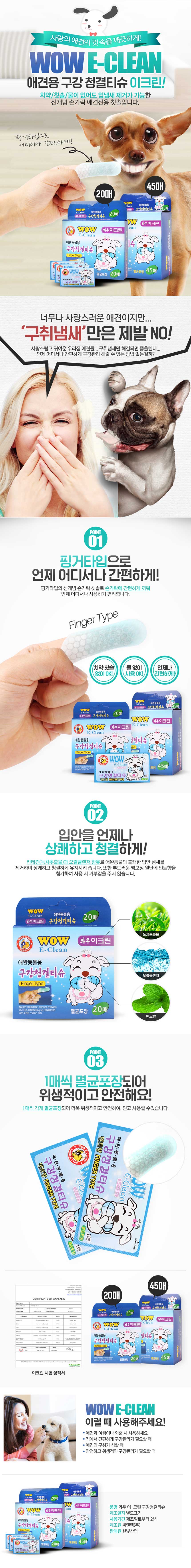 home > 강아지 > 목욕용품 > 구강관련 > 와우한빛 이크린 구강청결 티슈 20매