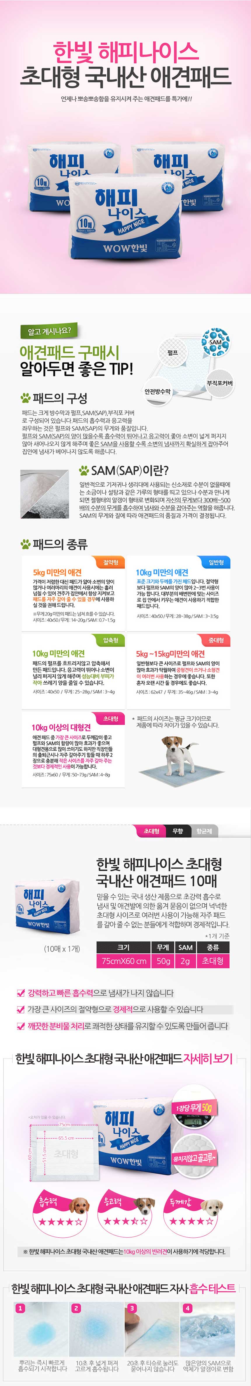 home > 강아지 > 위생/배변용품 > 배변패드 > 와우한빛 해피 나이스 패드 압축 슬림형 1Bag(10매 x 10개)