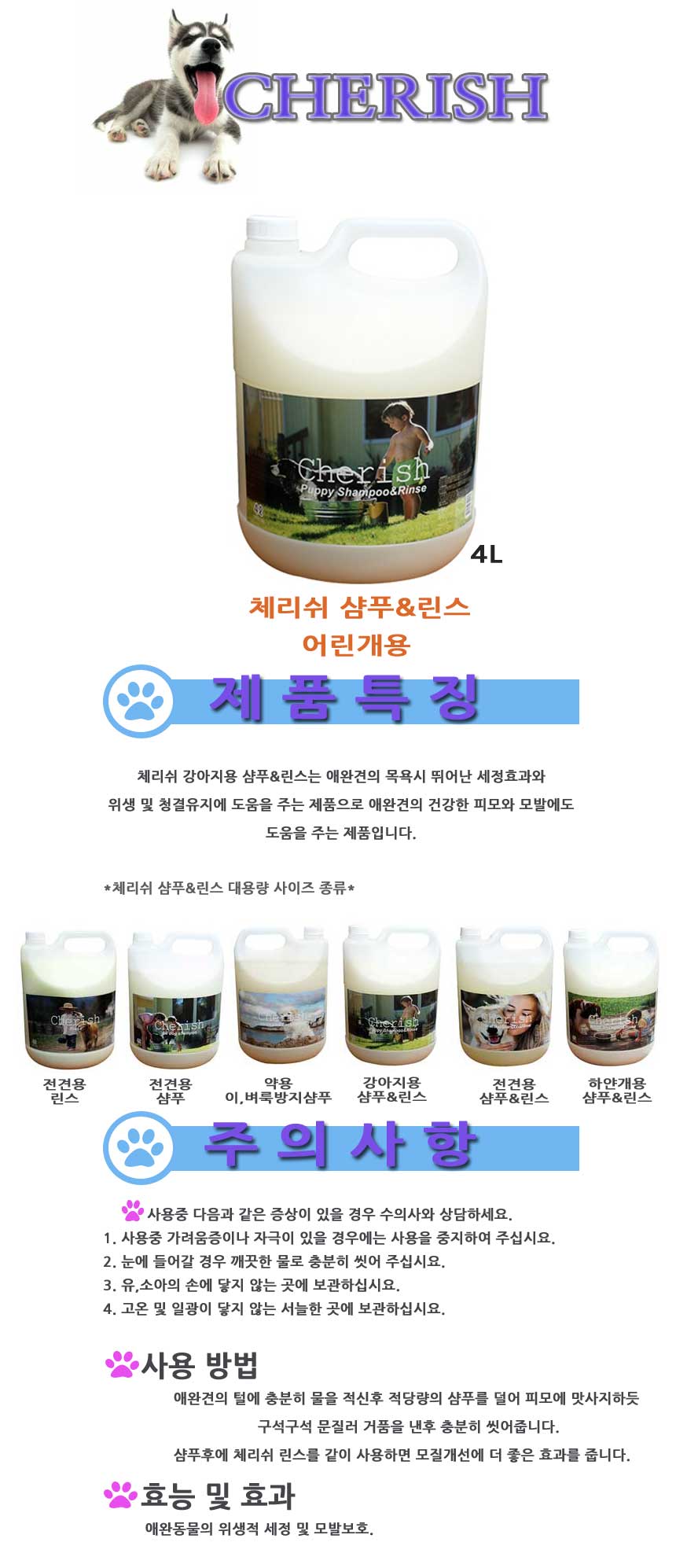 Cherish 체리쉬 퍼피 샴푸/린스(강아지용) 4L