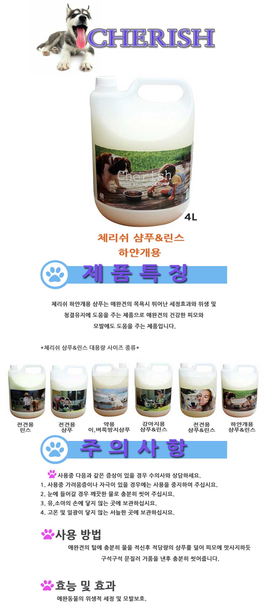 Cherish 체리쉬 화이트 샴푸/린스(흰개용) 4L