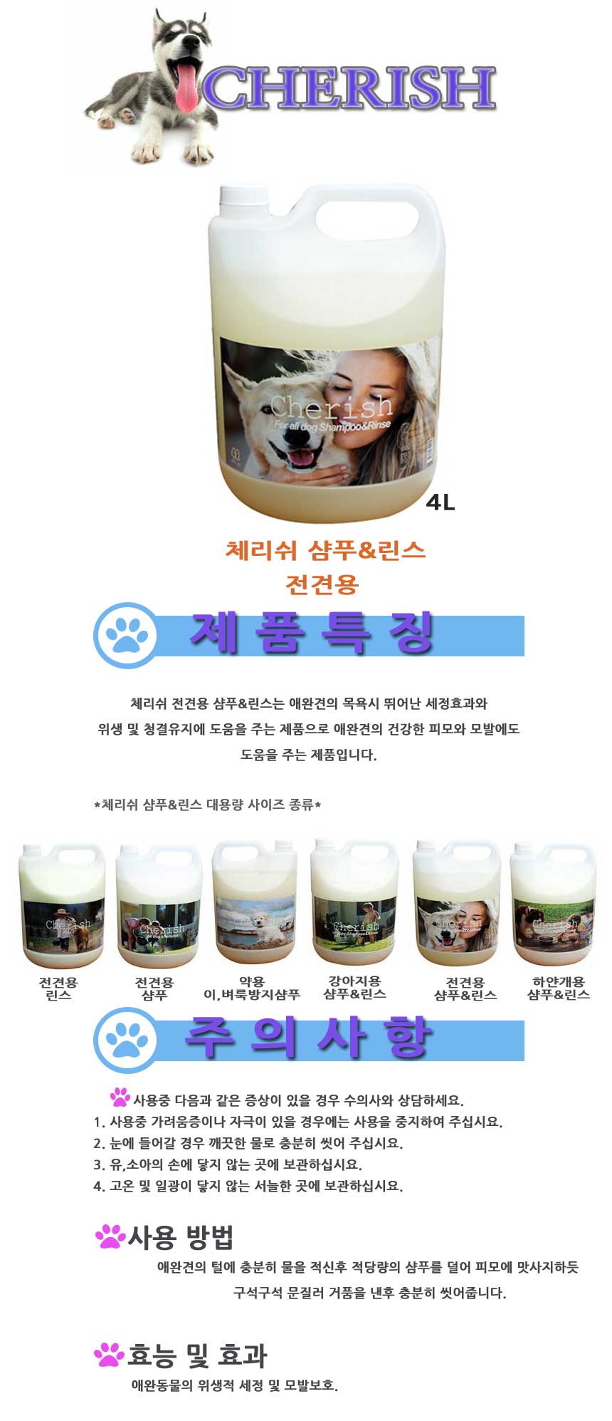 Cherish 체리쉬 All Dog 샴푸/린스 4L