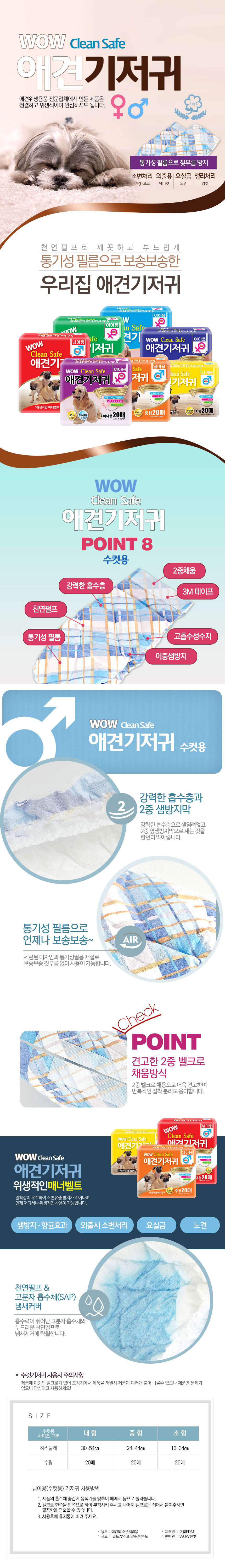 home > 강아지 > 위생/배변용품 > 기저귀/팬티 > 와우 크린세이프 애견 기저귀 수컷 대형 1Box(20매 x 10개)