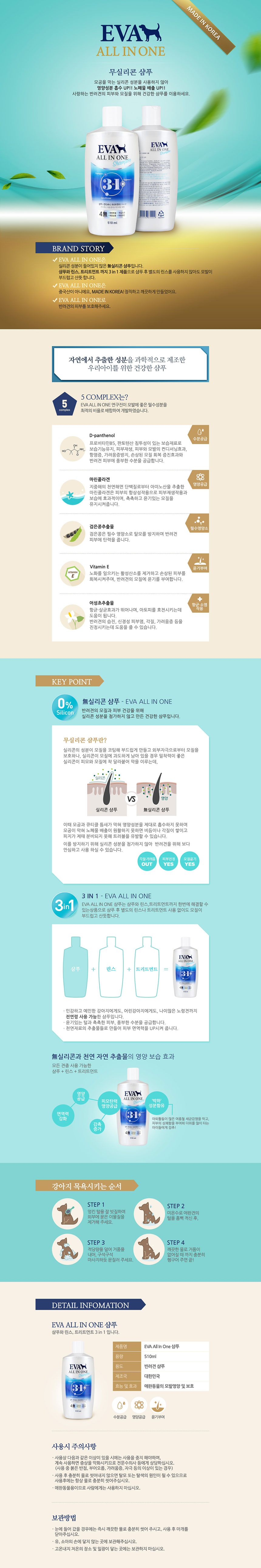 home > 강아지 > 목욕용품 > 샴푸/린스(컨디셔너)/비누 > 대주바이오 샴푸 EVA 에바 올인원 510ml