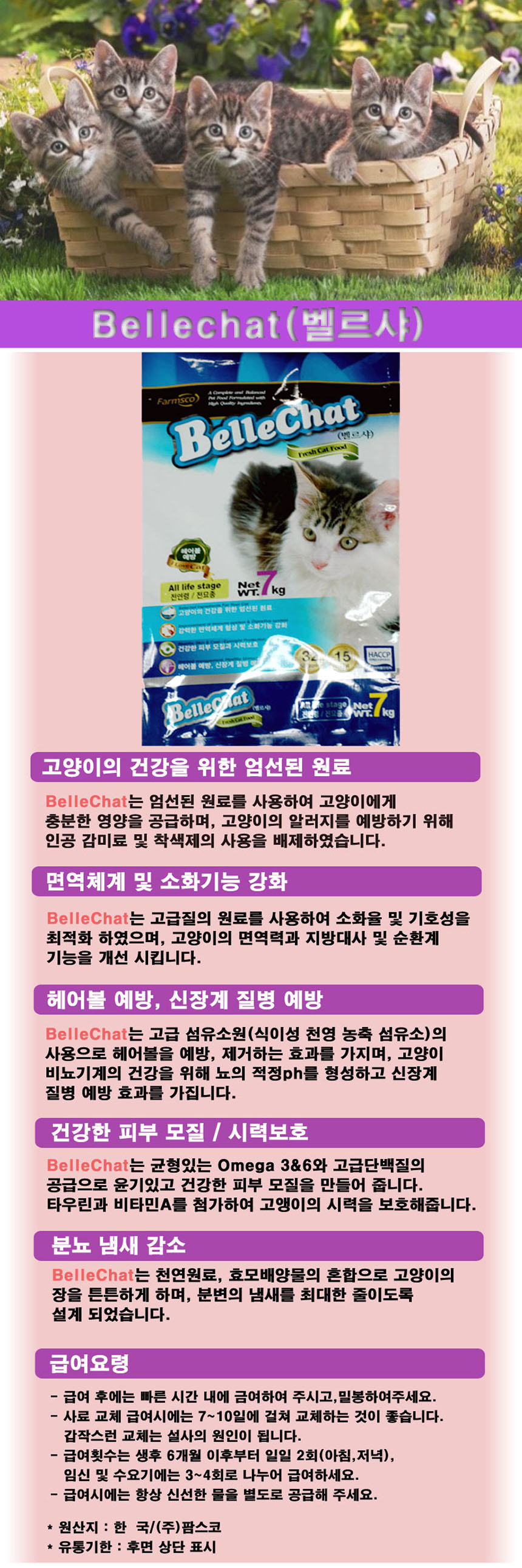home > 고양이 > 사료 > 성묘용(어덜트) > 팜스코 고양이사료 벨르샤 7Kg