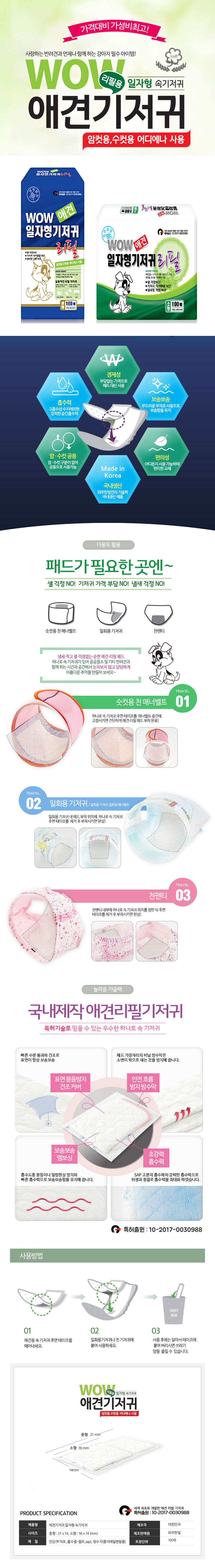 와우한빛 애견 기저귀 일자형 리필용 중형 100매