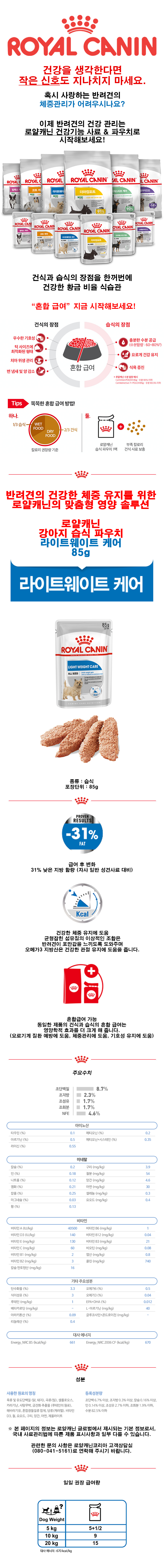 home > 브랜드별 > 강아지 > 로얄캐닌 > 로얄캐닌 강아지 파우치 라이트웨이트 케어 85g