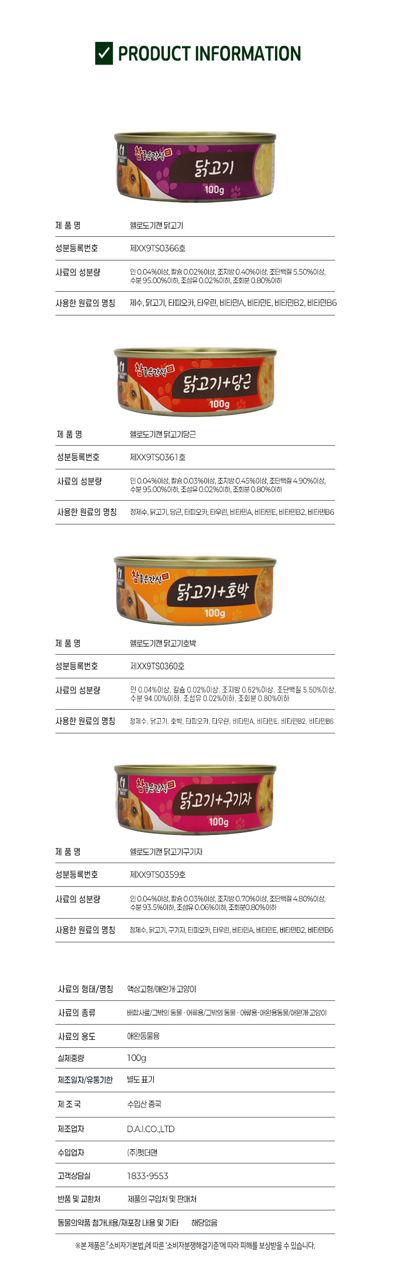 | 품명 및 모델명 | 헬로도기 참좋은간식 강아지 캔 |