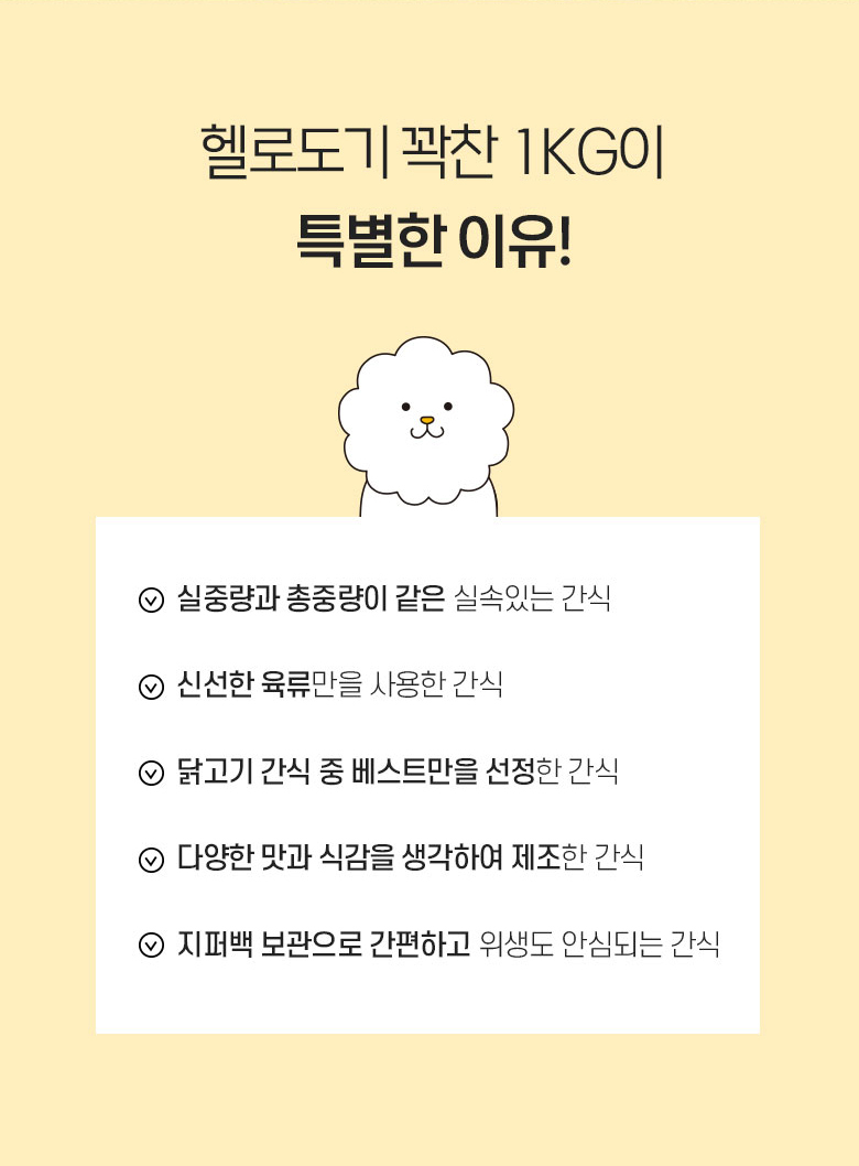 | 품명 및 모델명 | 헬로도기 참좋은간식 꽉찬 1Kg |
