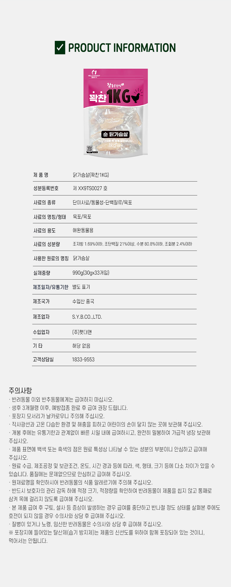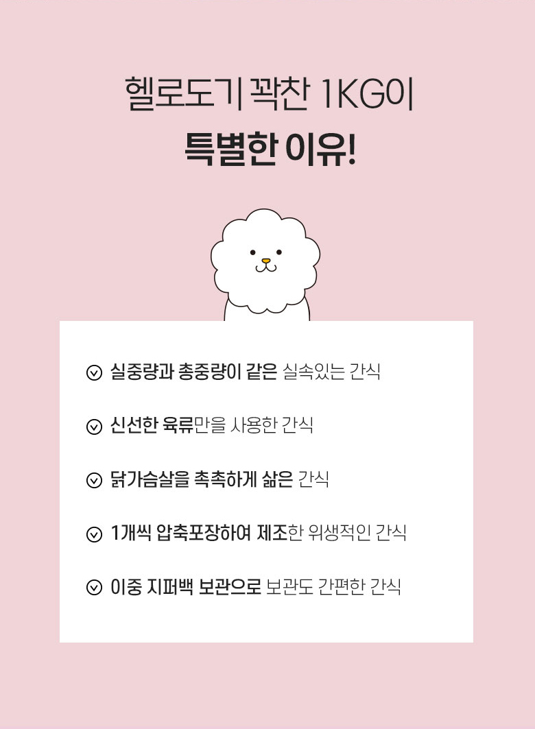 | 품명 및 모델명 | 헬로도기 참좋은간식 꽉찬 1Kg |